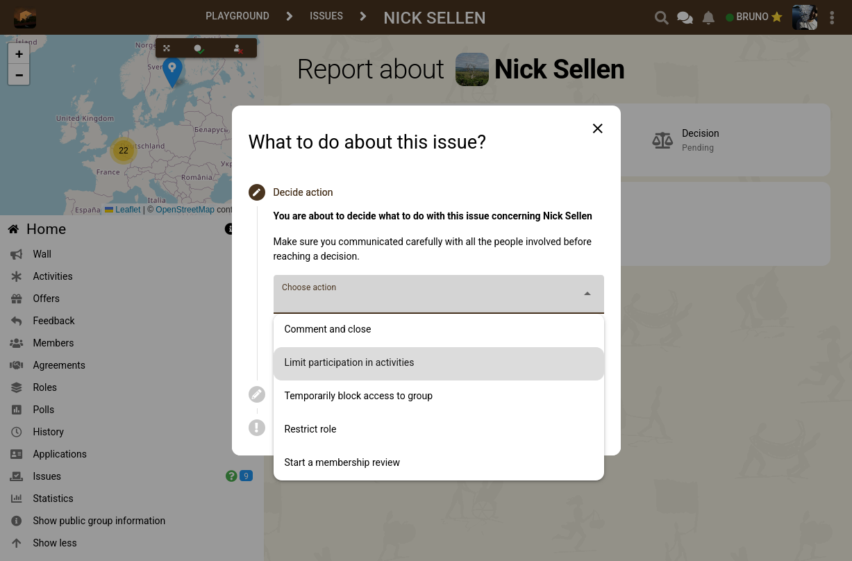 Issues and sanctions that can be applied by a mediator, such as pausing someone from place activities or from accessing the group, to deal with people who are disrespecting group agreements. See the tutorial here